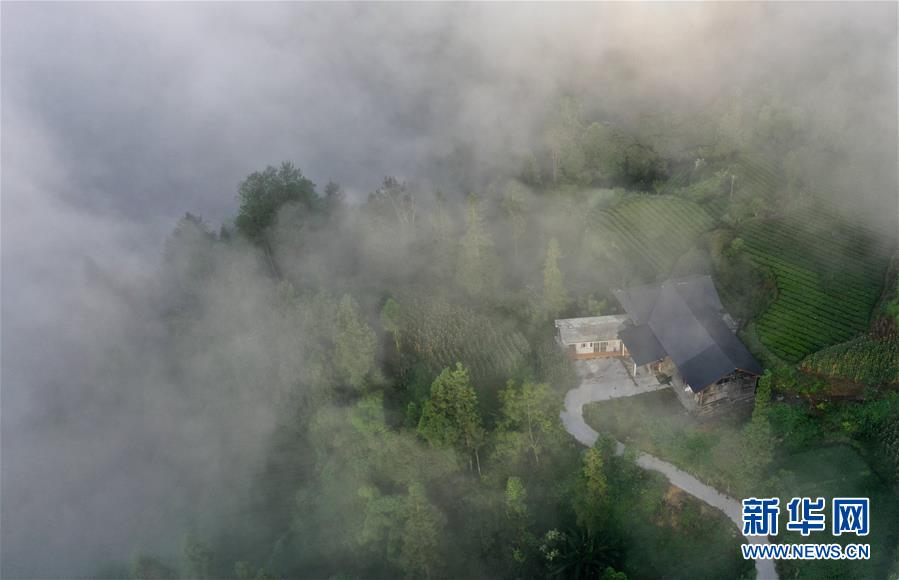 这是8月19日拍摄的利川市毛坝镇楠木村的民居(无人机照片)。 雨后初晴,湖北省恩施土家族苗族自治州利川市毛坝镇楠木村云海涌动,山峰、森林和村庄在云海中若隐若现,美若画卷。 新华社发(杨顺丕 摄)
