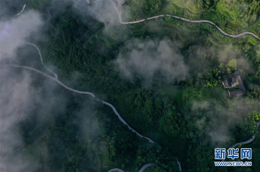这是8月19日拍摄的利川市毛坝镇楠木村的民居(无人机照片)。 雨后初晴,湖北省恩施土家族苗族自治州利川市毛坝镇楠木村云海涌动,山峰、森林和村庄在云海中若隐若现,美若画卷。 新华社发(杨顺丕 摄)