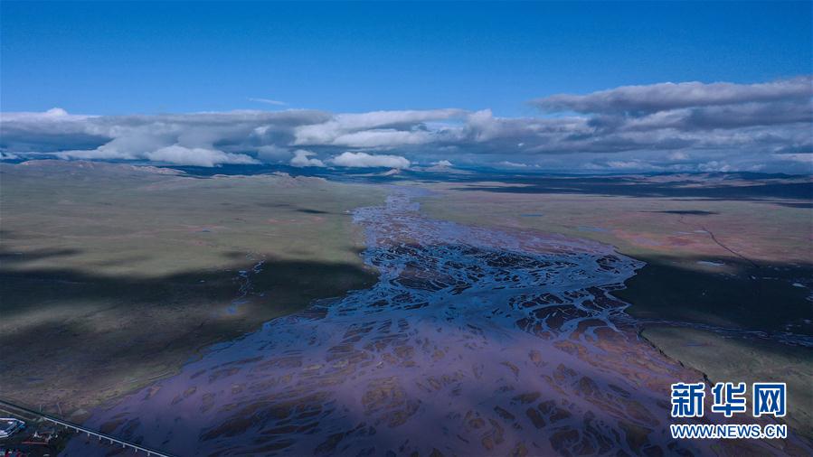 这是8月16日拍摄的长江正源沱沱河(无人机照片)。 位于青藏高原腹地昆仑山脉和唐古拉山脉之间的长江源地区,蜿蜒曲折的河道在草场间流淌,与远山相互映衬,形成一幅壮美的画卷。 新华社记者 吴刚 摄
