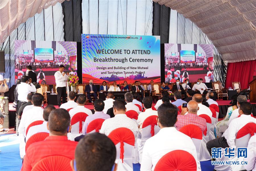 这是8月21日在斯里兰卡首都科伦坡拍摄的新穆特瓦尔工程盾构隧道全线贯通庆祝仪式。 由中国企业承建的科伦坡北部地下排水项目新穆特瓦尔工程盾构隧道21日全线贯通。 新华社记者唐璐摄