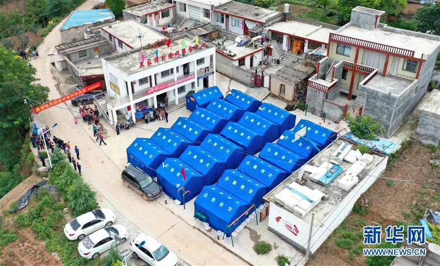 8月18日拍摄的甘肃陇南市武都区马街镇泉家湾村临时集中安置点(无人机照片)。 新华社记者 陈斌 摄