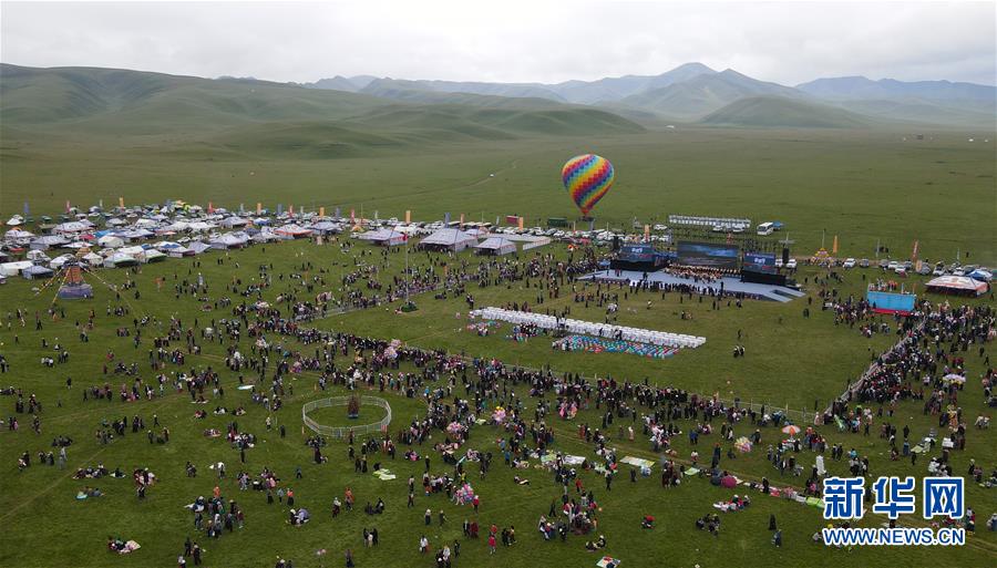 8月22日,赛钦草原上人潮涌动(无人机照片)。 当日,2020年九色甘南香巴拉夏河第三届拉卜楞香浪节在甘肃省夏河县赛钦草原上举行。香浪节是甘南地区藏族群众最重要的民俗节日之一,流传至今已有数百年历史。节日中藏族群众欢聚在草原上,跳锅庄、唱民歌、享美食,向人们展现传统民族文化的无限魅力。 新华社记者 张智敏 摄