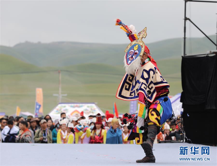 8月22日,演员在舞台上表演南木特藏戏。 当日,2020年九色甘南香巴拉夏河第三届拉卜楞香浪节在甘肃省夏河县赛钦草原上举行。香浪节是甘南地区藏族群众最重要的民俗节日之一,流传至今已有数百年历史。节日中藏族群众欢聚在草原上,跳锅庄、唱民歌、享美食,向人们展现传统民族文化的无限魅力。 新华社记者 张智敏 摄
