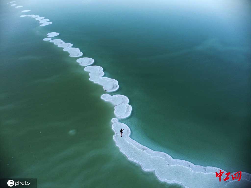 无人机俯瞰民众漫步死海神奇“盐层”