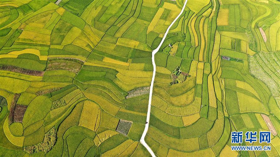 8月26日拍摄的贵州省安龙县招堤街道海庄村的稻田景色(无人机照片)。 新华社发(刘朝富 摄)