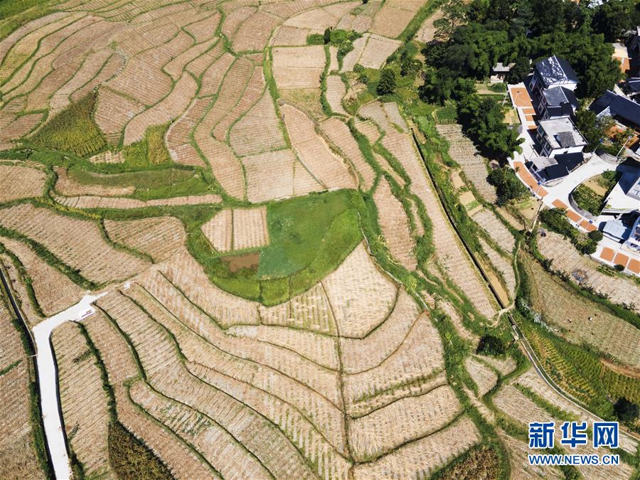 8月26日在贵州省遵义市汇川区团泽镇团泽居拍摄的高粱种植基地(无人机拍摄)。新华社发(罗星汉 摄)