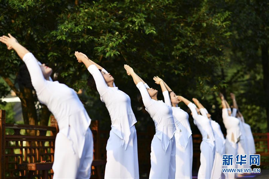 8月30日,瑜伽爱好者们在进行瑜伽展示。 8月30日,贵州省黔东南苗族侗族自治州剑河县的瑜伽爱好者们来到剑河温泉景区参加瑜伽展示活动。 新华社记者杨文斌摄