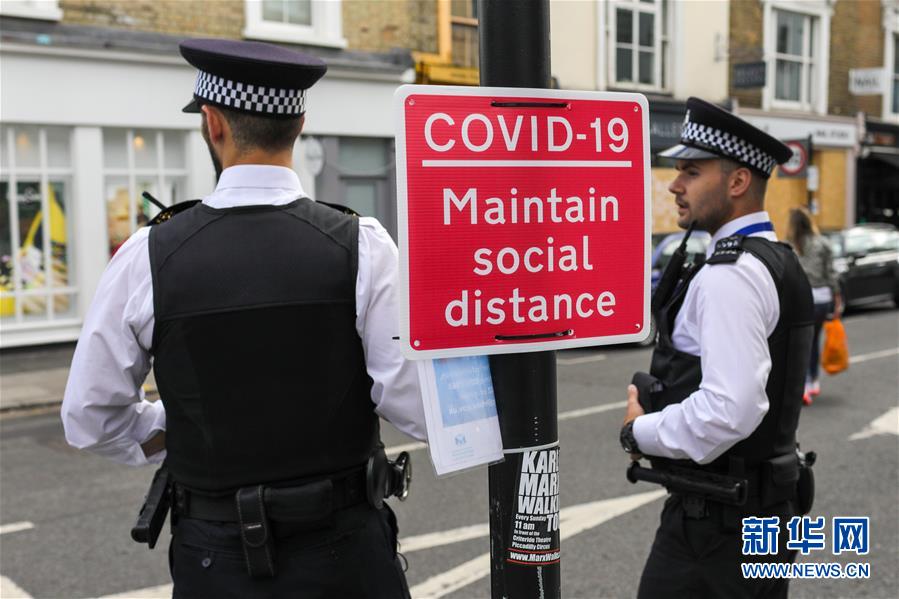 8月31日,警察在英国伦敦诺丁山地区执勤。 当日,受新冠疫情影响改为线上举办的英国诺丁山狂欢节落幕。 新华社发(蒂姆·爱尔兰摄)