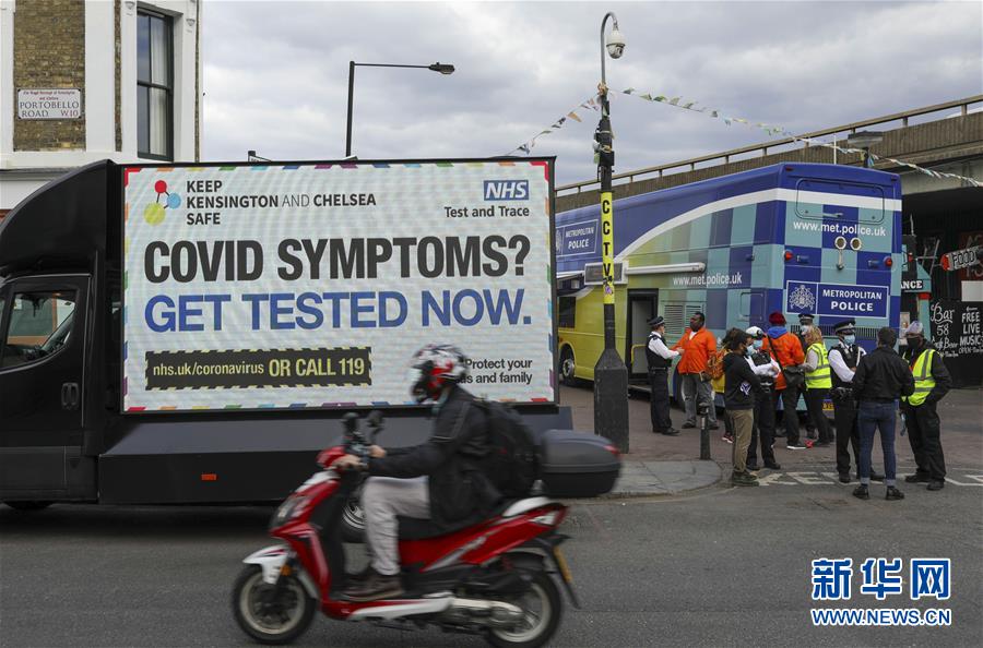 8月31日,警察与居民在英国伦敦诺丁山地区街边交谈。 当日,受新冠疫情影响改为线上举办的英国诺丁山狂欢节落幕。 新华社发(蒂姆·爱尔兰摄)