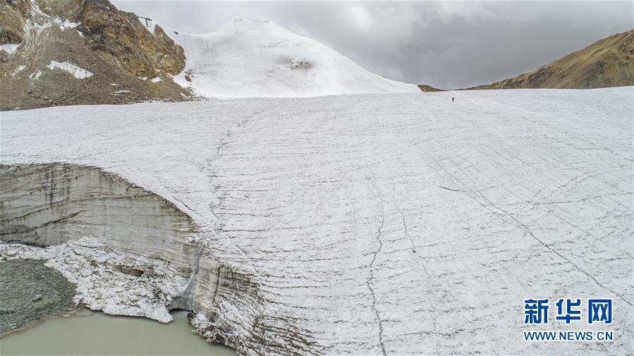 廓琼岗日冰川公园内一景(8月30日摄,无人机照片)。 廓琼岗日冰川公园位于西藏当雄县格达乡境内,海拔约5500米,距拉萨约160公里,是一处集冰川、雪山、湖泊、草甸于一体的独具特色的自然生态旅游区。在公园内,游客可以与冰川近距离接触,并可亲身体验攀登的乐趣。 新华社记者 孙非 摄