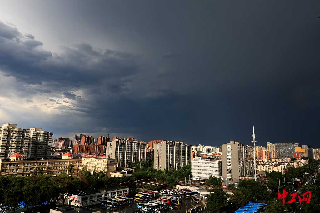 2020年9月1日下午,北京,阳光从雨后的云隙中射出,光影效果宛若太空题材的科幻大片。图为光线照在门头沟定都阁上。(余明/视觉中国 )