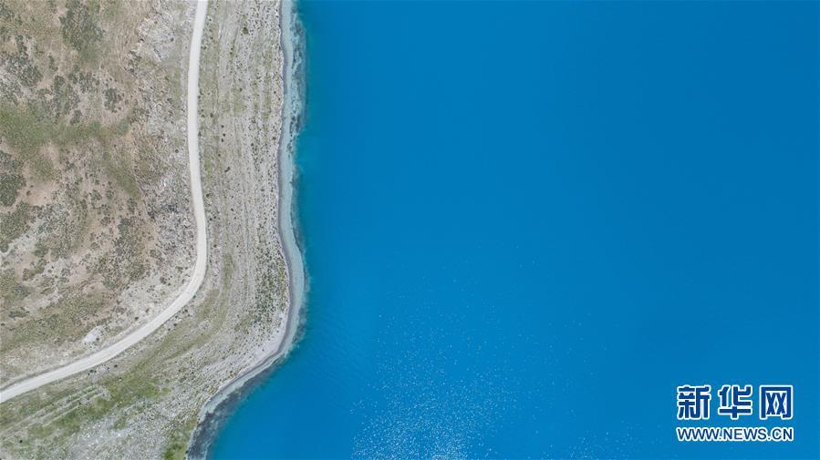 这是8月31日拍摄的羊卓雍错湖边的环湖公路(无人机照片)。 羊卓雍错简称羊湖,位于西藏山南市浪卡子县境内,湖面海拔4400多米。时值夏末秋初,羊湖风景醉人。 新华社记者 孙非 摄
