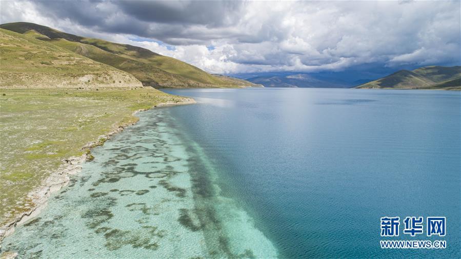 这是8月31日拍摄的羊卓雍错一景(无人机照片)。 羊卓雍错简称羊湖,位于西藏山南市浪卡子县境内,湖面海拔4400多米。时值夏末秋初,羊湖风景醉人。 新华社记者 孙非 摄