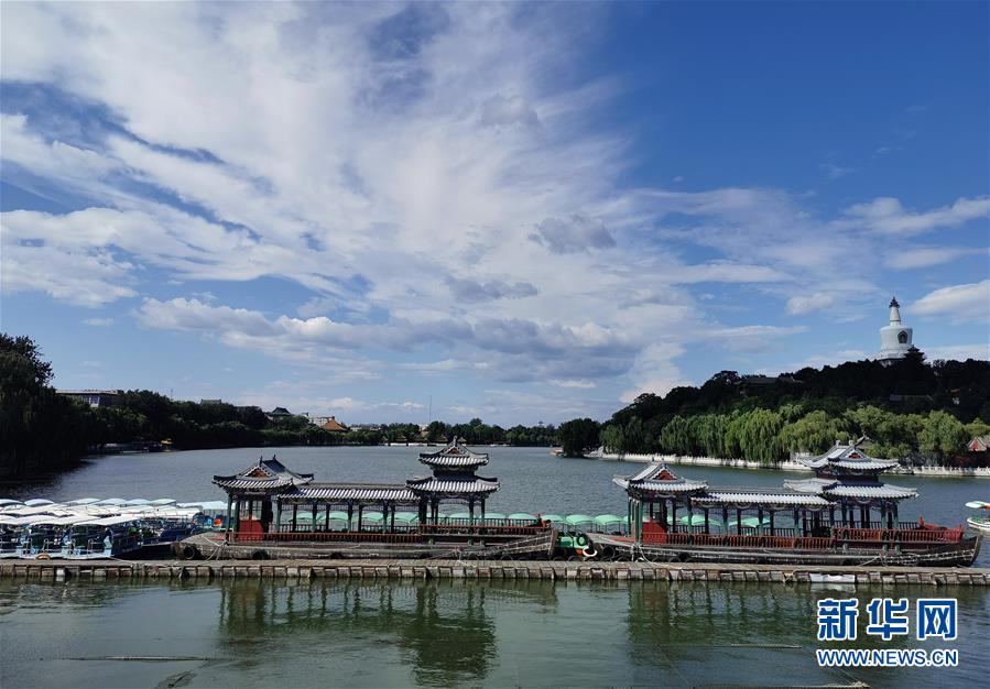 这是蓝天白云下的北海公园(9月3日手机拍摄)。 9月3日,北京迎来晴好天气,蓝天白云,景色宜人。 新华社记者 金良快 摄