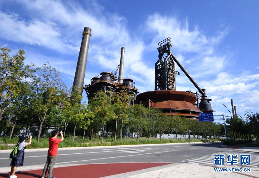 这是9月3日拍摄的北京石景山区首钢园一角。 当日,北京迎来晴好天气,蓝天白云,景色宜人。 新华社记者 张晨霖 摄