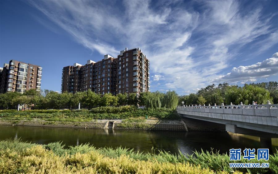这是9月3日拍摄的北京市大兴区旧宫镇一处小区。 当日,北京迎来晴好天气,蓝天白云,景色宜人。 新华社记者 李欣 摄