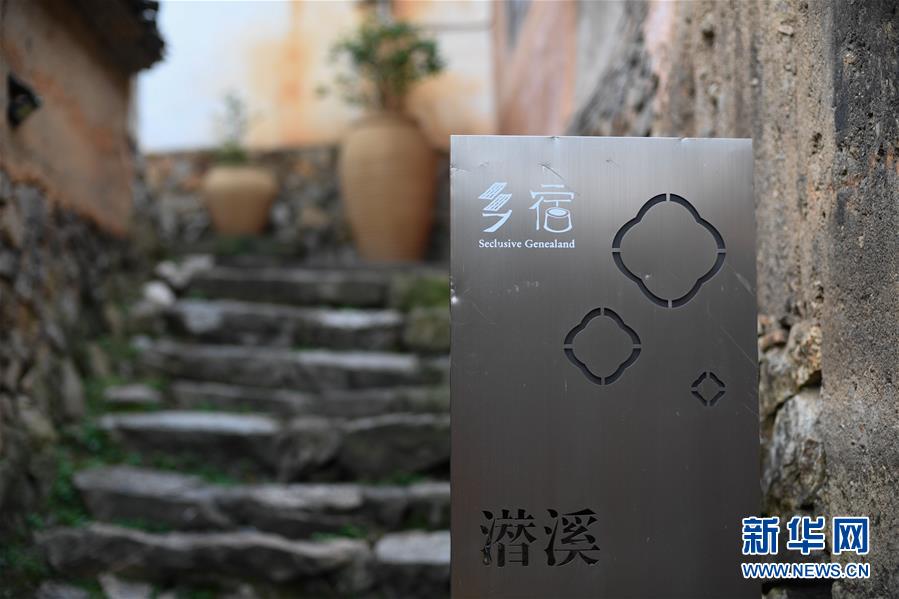 这是在浙江省松阳县三都乡杨家堂村拍摄的一家民宿的指示牌(7月17日摄)。