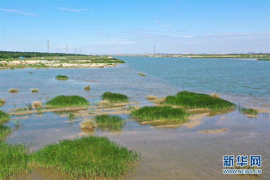 这是西西海生态湿地一景(9月10日,无人机照片)。 西西海生态湿地位于天津市西青区独流减河沿岸,占地面积1万余亩。这里原为大片鱼塘,养殖尾水直接排入独流减河造成水体污染。为有效改善和提升独流减河及沿岸的生态环境,西青区对河道沿线300米范围内的渔业养殖水域进行清退,今年4月在原有鱼塘的基础上开始实施水域连通、植被绿化等生态修复工程,构建湿地美景。 新华社记者 李然 摄