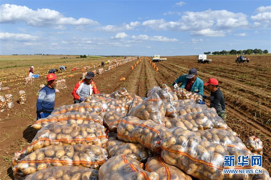 9月14日,农民在田间搬运土豆。 秋收时节,在内蒙古自治区呼和浩特市武川县上秃亥乡厂汉木台村的农田里,农民忙着收获土豆,一片热闹景象。 新华社记者 贝赫 摄