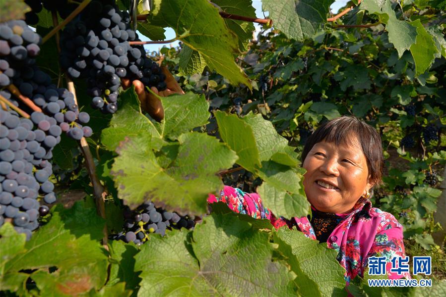 村民在马鞍山村一处葡萄园里查看即将收获的山葡萄(9月14日摄)。