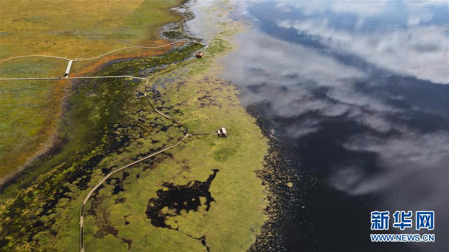 这是9月15日在甘肃省甘南藏族自治州碌曲县拍摄的尕海湖(无人机照片)。新华社记者 张智敏 摄