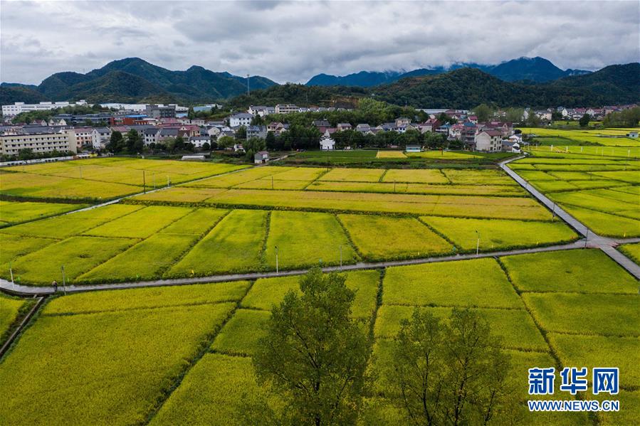 9月17日拍摄的钦堂乡的稻田(无人机照片)。 近期,浙江省建德市钦堂乡的2000多亩水稻进入成熟期,当地举行“稻香节”,向游客展示丰收美景,推动美丽乡村特色旅游发展。 建德市钦堂乡是浙江省省级粮食主体功能区,因为独特的地理优势,这里盛产富硒大米。近年来钦堂乡着力打造集赏景、采摘、品尝、教育等为一体的乡村旅游业态。 新华社记者 徐昱 摄