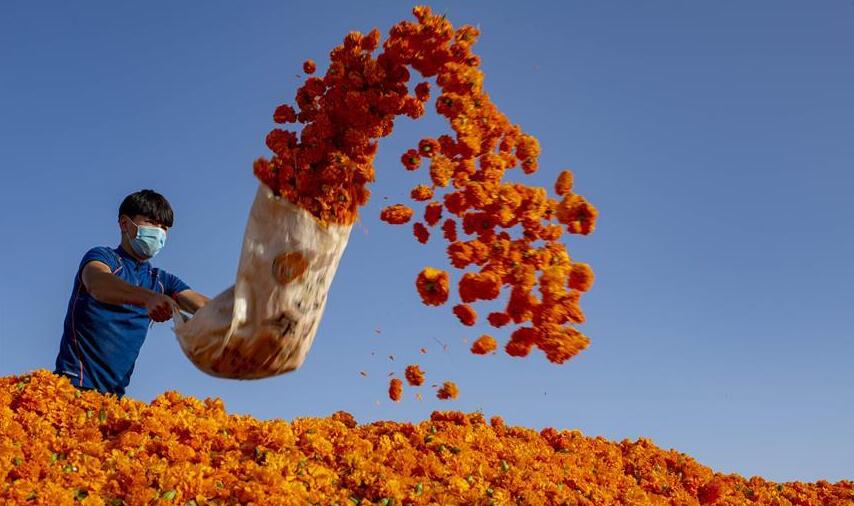 新疆于田万寿菊收获时