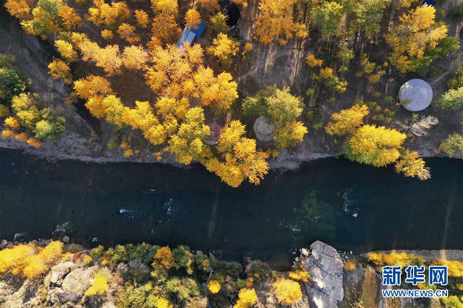 这是在新疆阿勒泰地区青河县境内拍摄的景色(9月20日摄,无人机照片)。 金秋时节,在新疆阿勒泰地区青河县,漫山遍野的树林色彩绚丽,美不胜收。 新华社记者沙达提摄