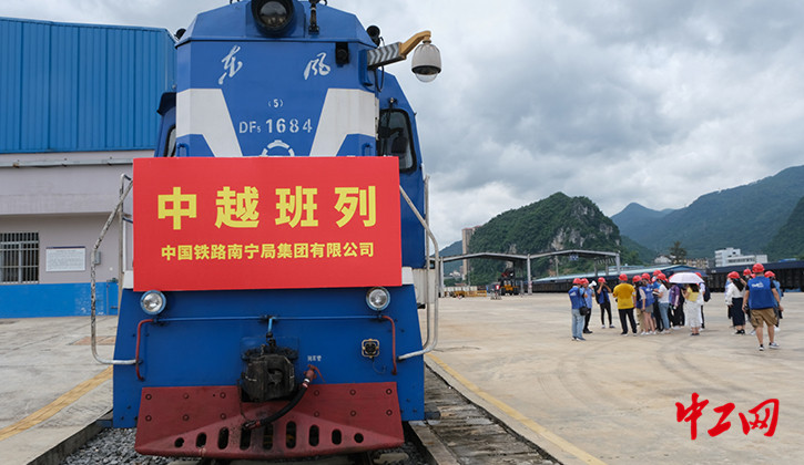 9月23日,中越集装箱跨境班列在广西凭祥铁路口岸物流中心准备发车。(摄影:杨宝森)