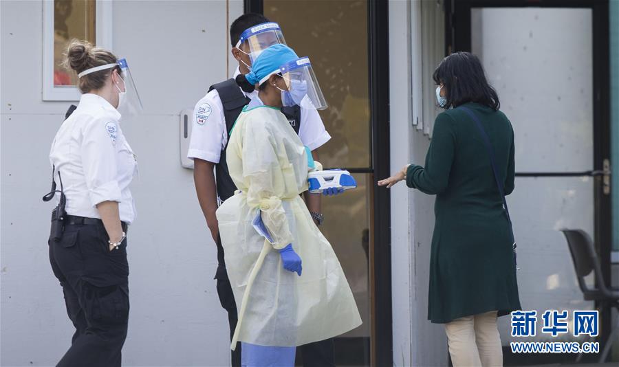 9月25日,在加拿大多伦多的一处新冠病毒检测中心,医护人员与等待检测者交流。新华社发(邹峥摄)