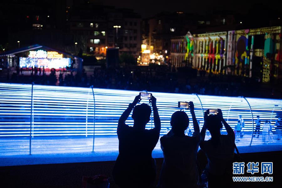 9月26日,人们在澳门光影节上游览拍摄。 当日,由澳门特区政府旅游局主办的“2020澳门光影节——光影嘉年华”活动在澳门塔石广场举行开幕仪式。今年的澳门光影节将持续到10月31日。 新华社记者 张金加 摄