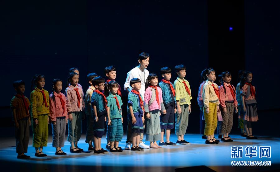 9月27日,演员在歌舞剧《大地颂歌》中表演。 当日,以湖南湘西十八洞村为原型创排的大型歌舞剧《大地颂歌》在长沙梅溪湖国际文化艺术中心首演。《大地颂歌》演出时长约两小时,采用“序言+6个故事+尾声”的结构,以多媒体场景剧演绎湖南“精准扶贫”的历程。 新华社记者 陈振海 摄
