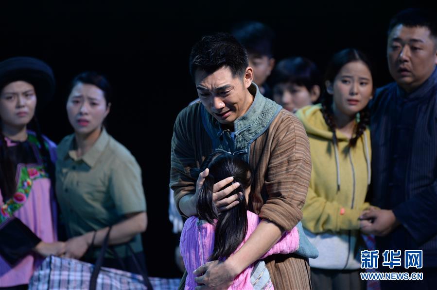 9月27日,演员在歌舞剧《大地颂歌》中表演。 当日,以湖南湘西十八洞村为原型创排的大型歌舞剧《大地颂歌》在长沙梅溪湖国际文化艺术中心首演。《大地颂歌》演出时长约两小时,采用“序言+6个故事+尾声”的结构,以多媒体场景剧演绎湖南“精准扶贫”的历程。 新华社记者 陈振海 摄