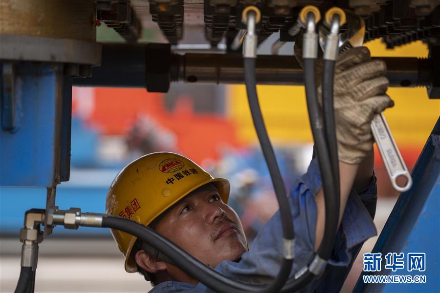 9月28日,在位于湖北襄阳的汉江重工生产厂区,工人在调试一台运梁车的液压管。 近年来,中铁十一局集团汉江重工有限公司瞄准发展机遇,进军千吨级高铁箱梁施工装备市场。该公司与中国铁建铁五院联合,完成一系列重大研发课题,率先在国内打通千吨级高铁箱梁施工装备的全产业链。其中,联合研发的全国首台千吨级高铁箱梁运架一体机,于今年6月在福厦高铁投入使用,被业内称为“架桥神器”。 新华社记者 杜华举 摄
