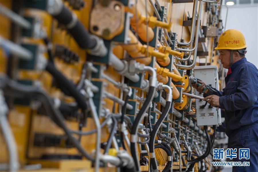 9月28日,在位于湖北襄阳的汉江重工生产厂区,工人在调试一台运梁车的液压管。 近年来,中铁十一局集团汉江重工有限公司瞄准发展机遇,进军千吨级高铁箱梁施工装备市场。该公司与中国铁建铁五院联合,完成一系列重大研发课题,率先在国内打通千吨级高铁箱梁施工装备的全产业链。其中,联合研发的全国首台千吨级高铁箱梁运架一体机,于今年6月在福厦高铁投入使用,被业内称为“架桥神器”。 新华社记者 杜华举 摄