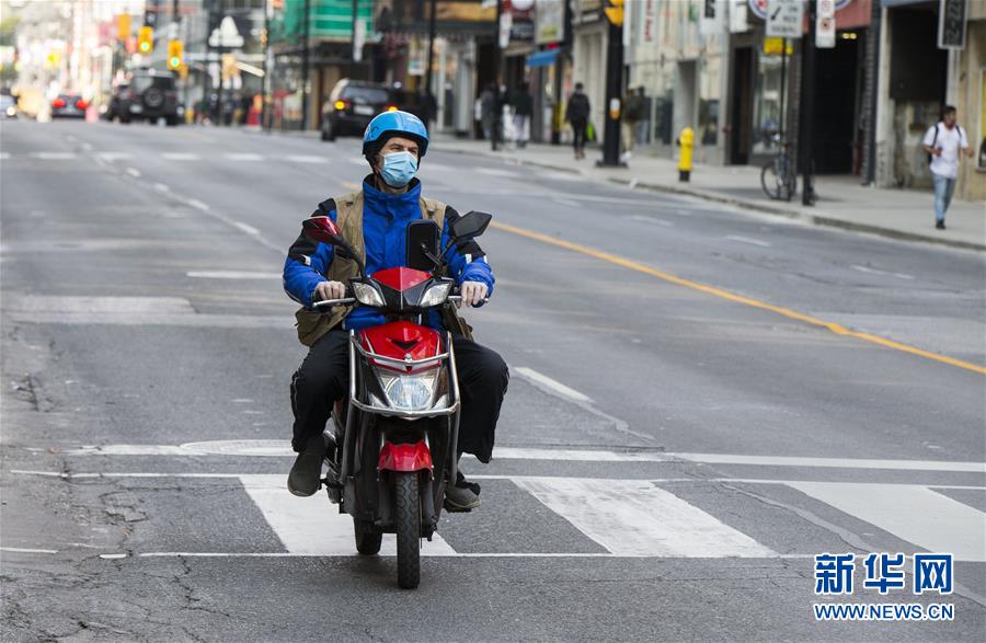 10月6日,在加拿大多伦多,一名戴口罩的男子骑行在空旷的大街上。 截至当日下午,加拿大累计新冠确诊病例上升至170945例,累计死亡病例9527例。 新华社发(邹峥摄)