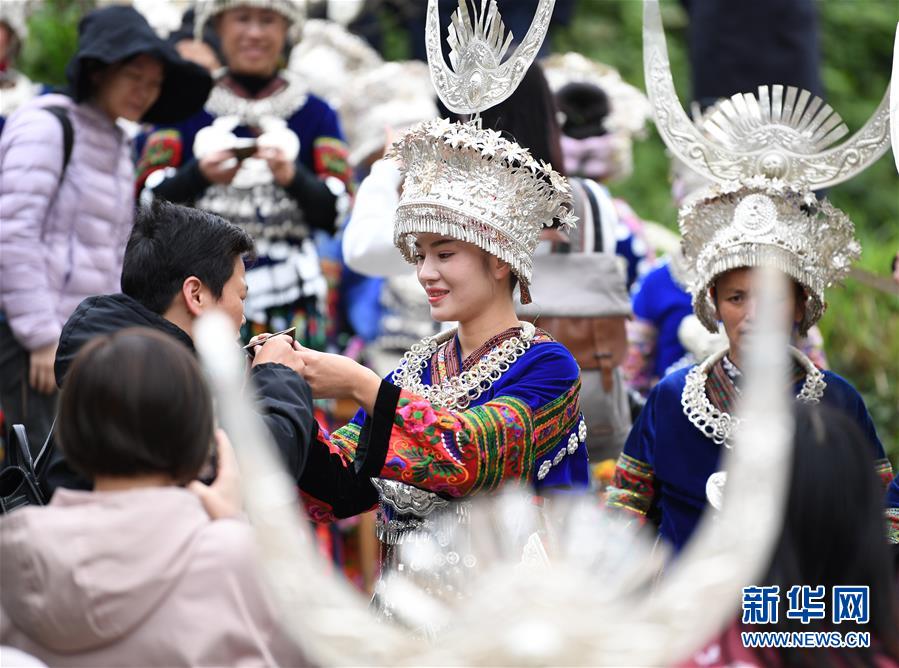 10月7日,游客在贵州省黔东南苗族侗族自治州雷山县郎德苗寨体验“拦门敬酒”。 西江千户苗寨、郎德苗寨位于贵州省黔东南苗族侗族自治州雷山县,距离沪昆高铁凯里南站均不到50公里的路程。近年来,当地不断推动高铁资源和旅游景区深度融合,方便各地游客前来体验苗族风情,观赏苗寨美景,为古老苗寨的乡村振兴注入活力。 新华社发(蔡兴文 摄)
