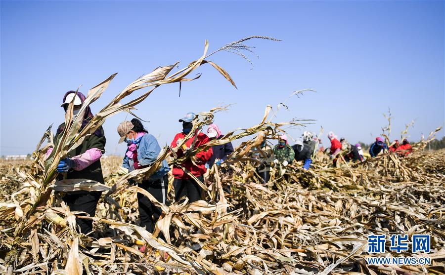 10月10日,农民在松原市宁江区伯都乡河西村的玉米田里收玉米。 金秋十月,位于吉林省重要粮食产区的松原迎来收获季,当地农民抢抓农时收获玉米、土豆等作物,田间地头一片繁忙景象。 新华社发(颜麟蕴摄)