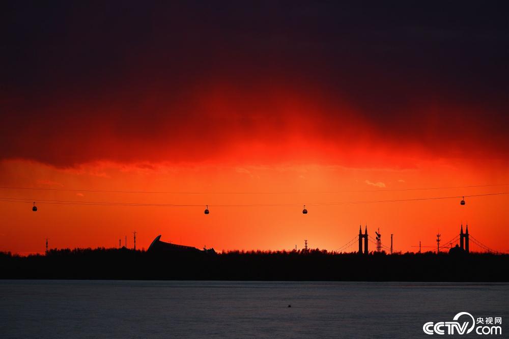 央视网消息:10月14日,黑龙江哈尔滨,秋日里的晚霞秀美壮观。(吴胡荼 摄)