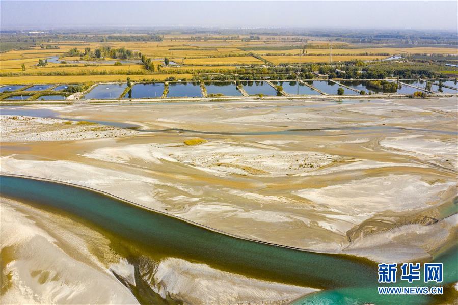 10月16日在新疆阿克苏地区温宿县托甫汗镇拍摄的已成熟的稻田(无人机照片)。 阿克苏地区温宿县地处天山南麓,是新疆水稻主产区之一。金秋时节,温宿县11.8万多亩水稻陆续进入成熟期,乡间田野一片金黄,美不胜收。当地农户抢抓农时,收割水稻,大米加工企业有序开展收购和生产工作。 新华社记者 胡虎虎 摄