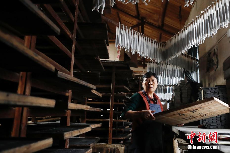 图为10月15日,在歙县老胡开文墨厂,工人正在把晾晒好的徽墨分类包装。中新社记者 殷立勤 摄