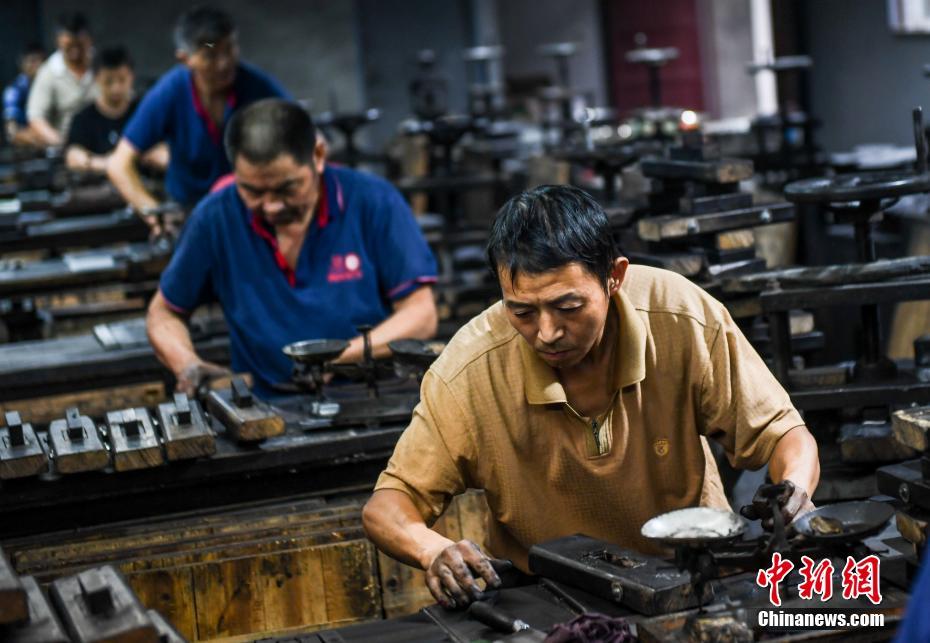 公司现有员工136人,大部分是本厂职工的子女。一张桌子、一把椅子,一坐就是一辈子,这就是制墨人的一生写照。中新社记者 武俊杰 摄