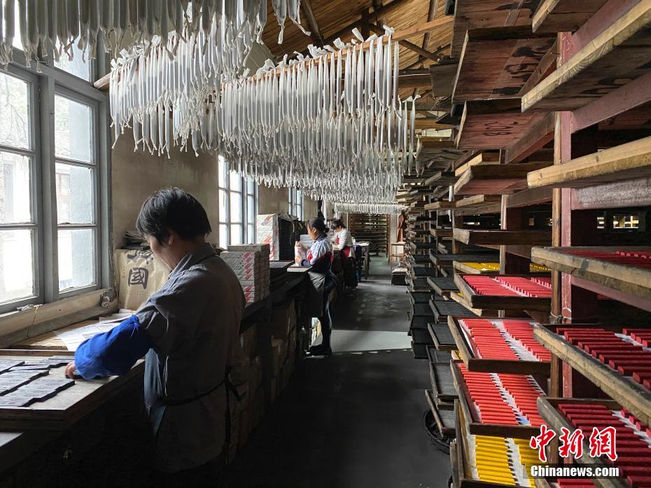 图为10月15日,安徽歙县老胡开文墨厂,工人正在整理墨块。中新社记者 马知远 摄