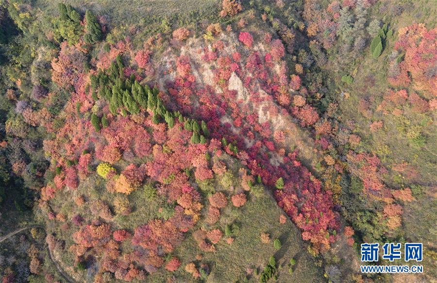 位于西安市临潼区的秦岭骊山景色(10月19日摄,无人机照片)。 秋日里,秦岭五彩斑斓,风景如画。 新华社记者 邵瑞 摄