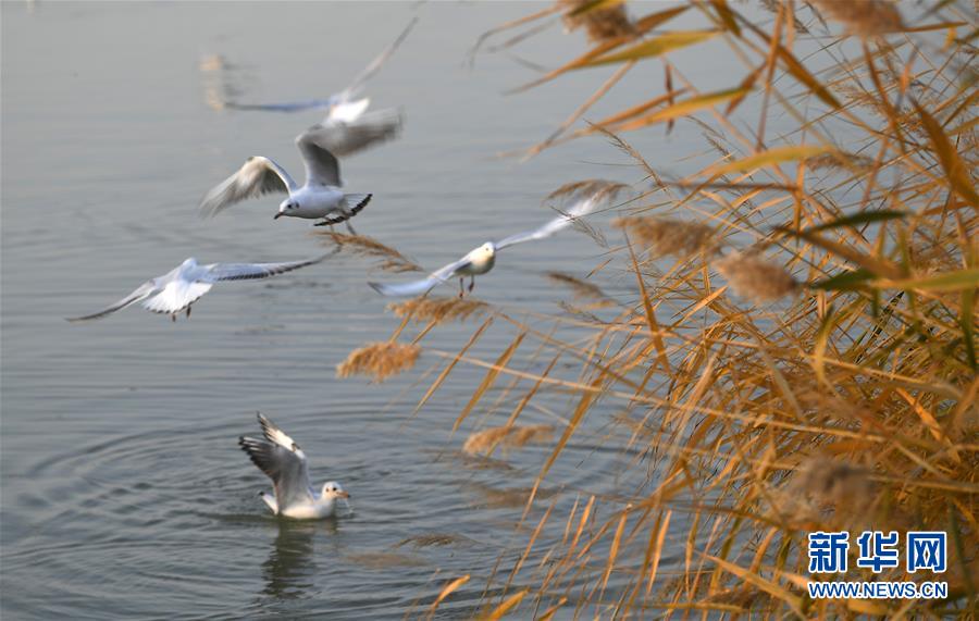 这是10月18日在宁夏沙湖景区拍摄的红嘴鸥。新华社记者 王鹏 摄