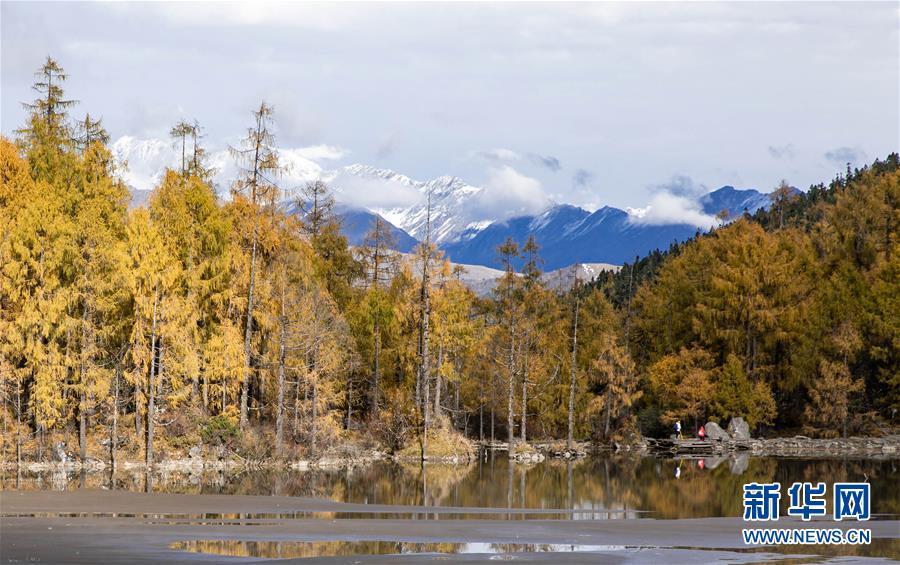 这是10月21日在玛嘉沟拍摄的彩林和湖泊。新华社记者 江宏景 摄