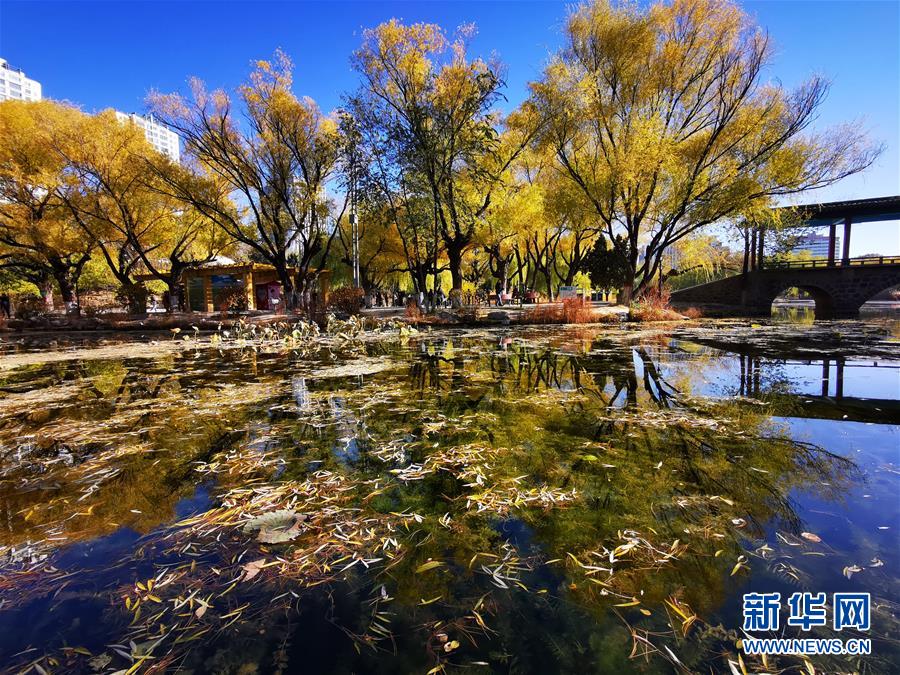 10月23日拍摄的呼和浩特市满都海公园景色。 霜降时节,塞外青城内蒙古呼和浩特秋色浓郁,美景满目。 新华社记者 贾立君 摄
