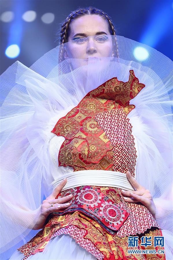 10月25日,模特在天才妈妈×东乡绣娘·张肇达公益时装秀上展示。 当日,“天才妈妈×东乡绣娘”公益品牌计划发布会暨天才妈妈×东乡绣娘·张肇达公益时装秀在北京举办。时装秀上,60套富有东乡族刺绣设计元素的时装为观众们献上一场视觉盛宴。 新华社记者 张玉薇 摄