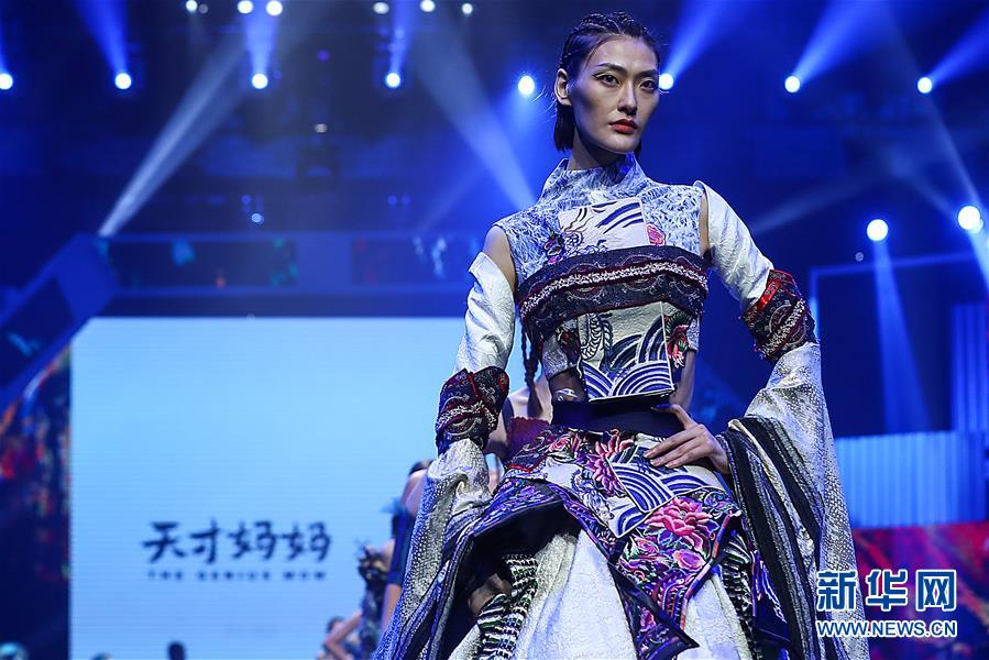 10月25日,模特在天才妈妈×东乡绣娘·张肇达公益时装秀上展示。 当日,“天才妈妈×东乡绣娘”公益品牌计划发布会暨天才妈妈×东乡绣娘·张肇达公益时装秀在北京举办。时装秀上,60套富有东乡族刺绣设计元素的时装为观众们献上一场视觉盛宴。 新华社记者 张玉薇 摄