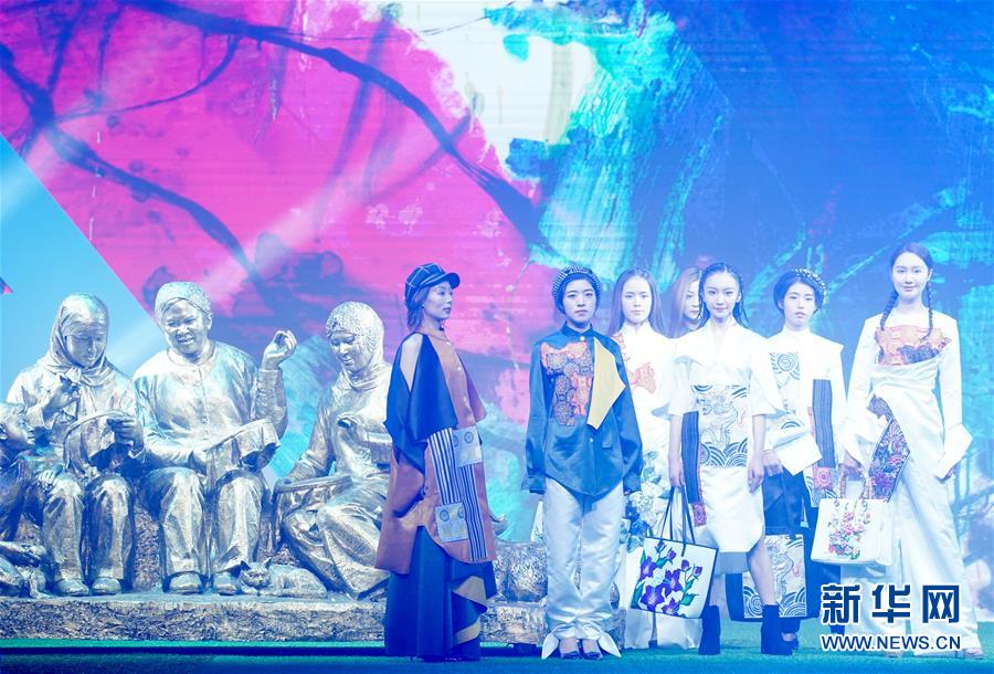 10月25日,“东乡绣娘”在公益时装秀上展示时装。 当日,“天才妈妈×东乡绣娘”公益品牌计划发布会暨天才妈妈×东乡绣娘·张肇达公益时装秀在北京举办。时装秀上,60套富有东乡族刺绣设计元素的时装为观众们献上一场视觉盛宴。 新华社记者 陈建力 摄